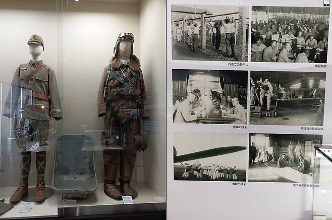 | ▲ 태평양전쟁 당시 비행조종사 복장과 소년비행당 소년들이 훈련 받는 모습 |