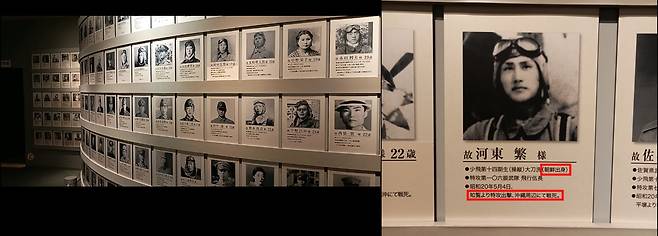 여러 유품과 전투기 비행복장, 다치아라이의 생활상을 둘러보며 '추억의 공간'이라 불리는 복도에 발을 디뎠을 때였다. 태평양전쟁 당시 카미카제 전사자의 사진과 생전이력을 살필 수 있는 복도 전시관이 나타났다. 혹시나 싶어 출신을 중심으로 하나하나 샅샅이 찾았다.