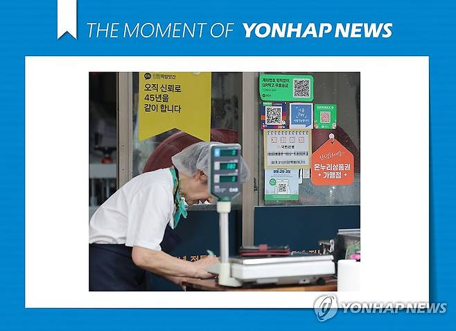 (서울=연합뉴스) 류영석 기자 = 정부가 민생회복 소비쿠폰 1차 지급계획을 발표한 6일 서울의 한 전통시장 점포에 기존 골목경제 소비 활성화를 위한 온누리상품권 가맹 팻말이 붙어 있다.