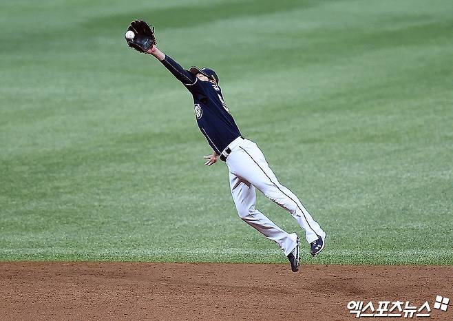 이어 "많은 내야수가 김재호 선수처럼 하고 싶다고 얘기했는데 김재호보다 더 열심히 하라는 얘길 건넸다. 김재호라는 이름을 지키기 위해서 열심히 달려오지 않았나 싶다. 수비 훈련할 때 김재호보다 진지하게 하는 선수는 아직까지 없었다"라고 강조했다.