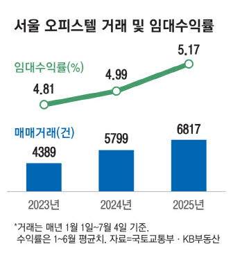 국토교통부 실거래가 공개시스템에 따르면 올해 1월 1일부터 7월 4일까지 신고된 서울 오피스텔 매매 거래량은 6817건으로, 전년 동기(5799건) 대비 17.6% 증가했다. 2022년 이후 3년 만에 최대다.