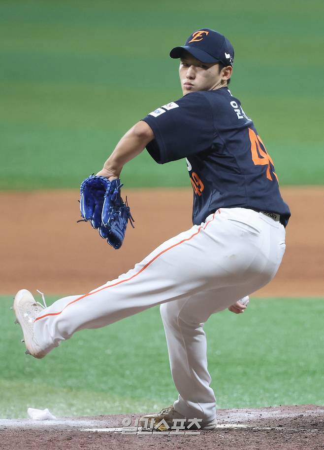 6일 오후 서울 고척스카이돔에서 열린 2025 KBO리그 프로야구 키움히어로즈와 한화이글스의 경기에서 9회말 윤산흠이 등판해 역투하고 있다.