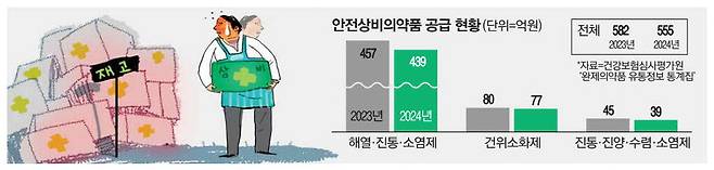 건강보험심사평가원에 따르면 지난해 편의점 안전상비약 보급액은 총 555억4200만원이었다. 2023년과 비교해 4.6% 감소한 수치다. 해열·진통·소염제군(438억5600만원), 건위소화제군(77억4000만원), 진통·진양·수렴·소염제군(39억4600만원) 등 모든 제품군에서 줄었다.