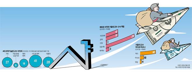 주요 대학 핵심 인재들의 탈(脫)한국 현상이 전방위적으로 확산하고 있다. 이공계 인재에 이어 경제·경영 분야 석학도 줄줄이 한국을 떠나고 있어서다. 대학 성과 보상 체계가 뒷받침되지 않아 학계 전반적인 글로벌 역량이 하락하는 악순환이 이어지고 있기 때문이다. 인재 전쟁을 벌이고 있는 글로벌 대학들이 한국인 교수들에게 눈독을 들이는 이유다. 이번 영입전에서는 서울대에서 1억원가량의 연봉을 받던 교수들이 홍콩에서 33만달러 수준의 연봉을 제안받은 것으로 알려졌다. 한화로 약 4억5000만원이다.
