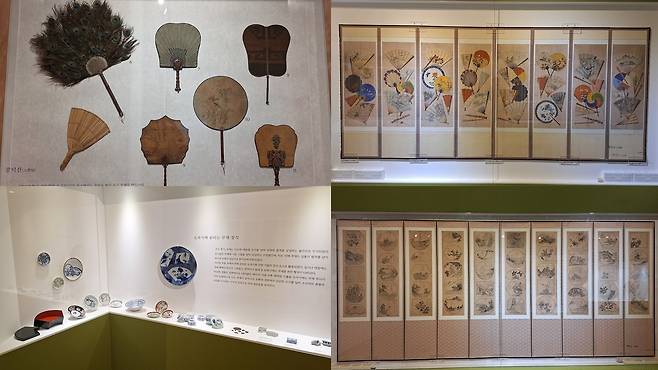 | ▲ 인천시 송암미술관 특별전 전시물 사진 인천시 송암미술관에서 “부채, 세 가지 바람” 이라는 주제로 열리는 특별전 내부에 물건들이 전시되어 있다. |
