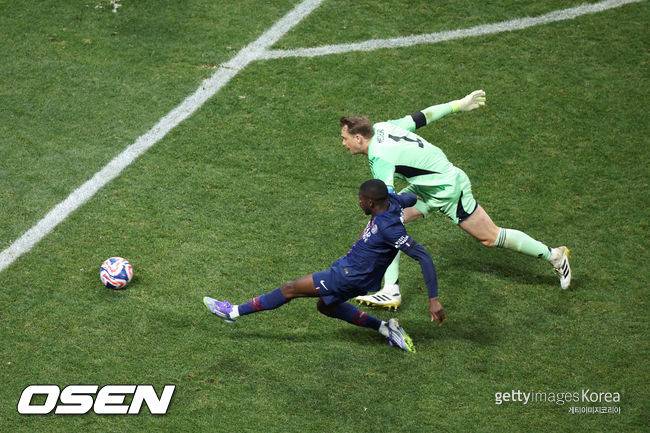 5일(한국시간) 미국 애틀랜타 메르세데스벤츠 스타디움에서 열린 2025 FIFA 클럽 월드컵 8강전. PSG는 바이에른 뮌헨을 2-0으로 꺾고 4강 진출에 성공했다. 경기 막판 쐐기골을 터뜨린 뎀벨레는 곧바로 그라운드에 앉아 두 손으로 게임 패드를 쥔 듯한 세리머니를 펼쳤다.