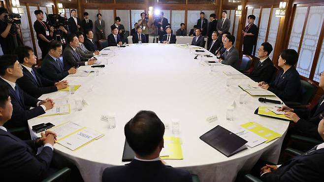 정부에서는 김 총리와 윤창렬 국무조정실장 등이, 대통령실에서는 강훈식 비서실장과 김용범 정책실장, 우상호 정무수석 등이 각각 자리했습니다.