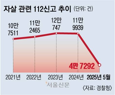 자살 신고는 꾸준히 늘고 있다. 6일 경찰청에 따르면 자살 관련 112 신고는 2021년 10만 7511건에서 지난해 11만 9939건으로 늘었고, 올해는 5월 기준 4만 7292건이나 된다. 서울에 하나뿐인 이 센터에서는 4월에는 93건, 5월에는 97건을 출동했다. 한 경찰관은 “대화를 거부하던 사람이 방언 터지듯이 그간 겪었던 일을 털어놓기도 한다”며 “상담을 통해 당장의 극단적인 선택을 막을 수 있다”고 했다.