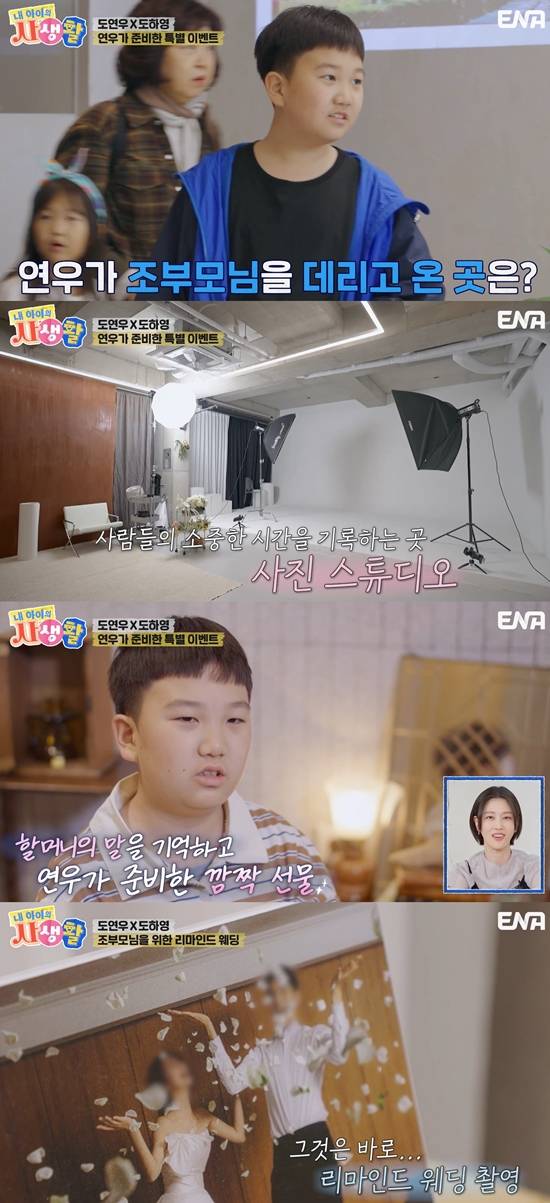 도연우가 조부모와 함께 방문한 곳은 사진 스튜디오였다. 도연우는 "할머니, 할아버지 결혼 50주년 선물을 뭐로 할지 고민하다가 스쳐 지나간 말 중에 할머니가 '드레스를 입고 싶다'라고 한 말이 생각났다. 리마인드 웨딩을 준비했다"라며 속 깊은 마음을 밝혔다.