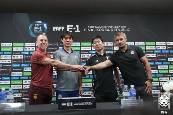6일 오후 2시 용인미르스타디움에선 2025 동아시아축구연맹(EAFF) E-1 풋볼 챔피언십(동아시안컵) 4개국 기자회견이 열렸다. 홍명보 감독을 필두로 일본 모리야스, 중국 데얀 주르예비치, 홍콩 애슐리 웨스트우드 감독이 자리를 빛냈다.