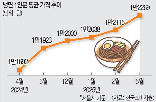 그러나 평양냉면은 높은 가격 탓에 냉면값 상승의 주범으로 지목되기도 한다. 한국소비자원 참가격에 따르면, 서울 지역 냉면 1인분의 평균 가격은 지난해 4월 1만1692원에서 지난 5월 1만2269원으로 올랐다. 주요 평양냉면집의 가격은 1만5000원에 달하거나 더 높은 수준이다. 이에 따라 집에서 즐길 수 있는 가정간편식 제품도 성장세를 보이고 있다. 풀무원은 자사 평양냉면 제품군이 2021년부터 2024년까지 연평균 13.2%의 매출 성장률을 기록하고 있다고 설명했다.