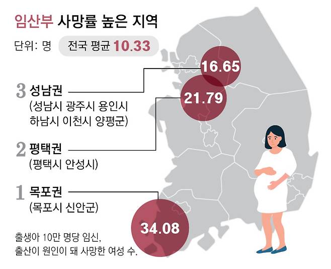전남 목포시와 신안군이 전국에서 고위험 산모 사망 위험이 가장 높은 지역이라는 연구 결과가 나왔다. 경남 양산시와 대구·경북 지역은 신생아 사망률이 높은 지역으로 조사됐다. 이들 지역 상당수는 출생아 감소, 필수 의료 기피 등으로 산부인과를 비롯한 분만 인프라가 붕괴된 지역이다.