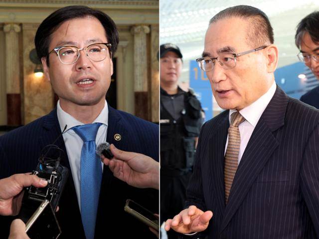 한미 고위급 무역 협상을 위해 미국을 찾은 여한구(왼쪽) 산업통상자원부 통상교섭본부장이 5일 워싱턴 유니언 기차역에서 취재진의 질문에 답하고 있다. 오른쪽 사진은 위성락 국가안보실장이 6일 미국 정부 고위급 인사들과 협의를 위해 인천국제공항을 통해 워싱턴으로 출국하는 모습. 워싱턴=워싱턴 특파원 공동취재단·연합뉴스
