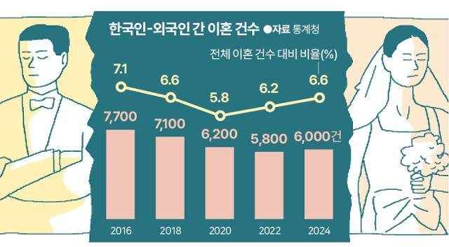 일각에서는 외국인과의 혼인, 이른바 ‘다문화가정’에서 이혼율이 더 높다고 인식하는 경우가 많다. 그러나 통계는 이런 통념을 뒷받침하지 않는다. 통계청에 따르면 전체 혼인 중 다문화 부부 비율은 2014년 7.6%에서 2024년 9.3%로 증가했지만, 같은 기간 전체 이혼 중 다문화 부부가 차지하는 비율은 8.4%에서 6.6%로 오히려 감소했다. 이는 다문화 부부의 혼인 관계가 상대적으로 안정적으로 유지되고 있음을 보여준다.