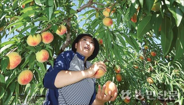 경북 예천군 지보면 소화리에 있는 ‘럭피팜농장’에서 복숭아 수확이 한창이다. 농장주 김해묵씨는 “올해는 봄철 저온피해가 없었고 수확기에 비가 거의 내리지 않아 복숭아 작황이 지난해보다 좋다”고 말했다.