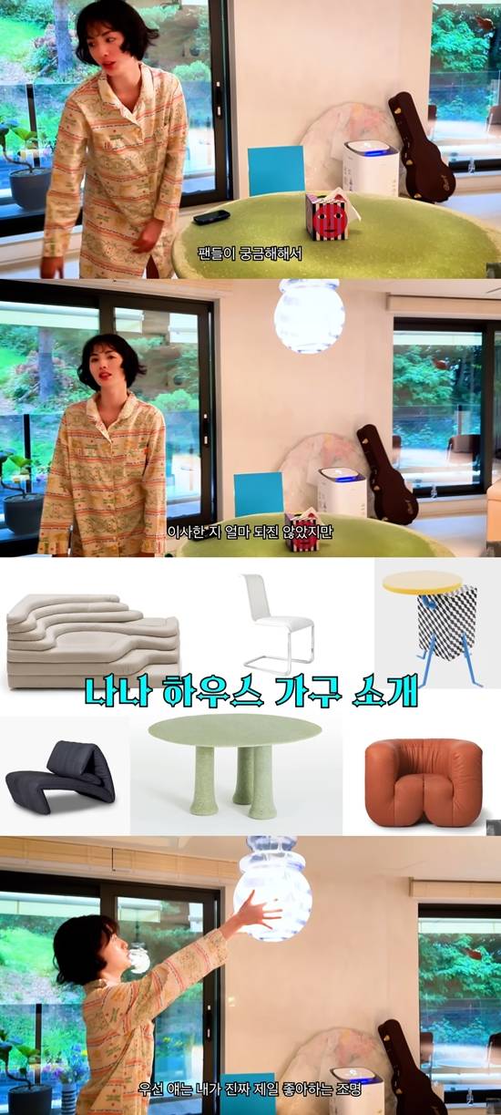 나나는 "팬들이 궁금해해서 이사한 지 얼마 되진 않았지만 내가 좋아하는 가구를 (소개하겠다)"라며 팬들의 궁금증을 풀어주기 위해 영상을 찍는다고 밝혔다.