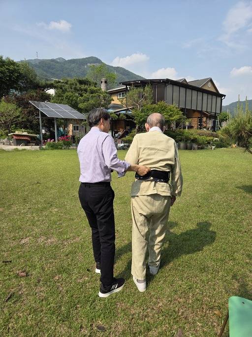 김 보호사는 자신이 돌보는 시간 외엔 대체로 침대에 누워 있는 정씨를 위해 가급적 같이 산책하러 나가려고 한다. 밖에 나가 바람과 햇볕을 쬐다 보면 기분도 나아지고 삶에 대한 의지도 생기기 때문이다. 요양보호사 보조업무 일일체험에 나선 기자가 정씨를 휠체어로 옮기려 몸을 안으려고 하자 지켜보던 김 보호사가 빙그레 웃으며 자신이 하겠다고 막아선다. 김 보호사는 씨름 샅바 잡듯이 정씨 윗옷과 바지를 한꺼번에 잡더니 힘들이지 않고 휠체어로 옮겼다.