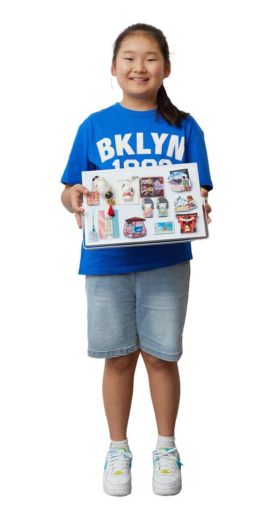 두 번째로 소중히 여기는 기념품은 일본 여행 때마다 모은 마그넷이에요. 볼 때마다 그곳에서 먹었던 맛있는 음식들과 장소, 즐거웠던 순간들이 마구마구 떠오르죠. 마지막으로 세상에 하나뿐인 기념품! 제가 태어나 일 년이 된 것을 기념하는 핸드타월입니다. 엄마는 제 돌잔치 때 손님들께 보답하는 마음으로 준비한 선물이라고 말씀하셨죠. 이름과 생일이 수 놓인 세상에 하나뿐인 이 타월을 평생 간직할 거예요.