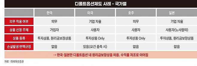 경제협력개발기구(OECD) 국가 중 디폴트 옵션에 원리금보장형을 넣은 곳은 한국과 일본뿐이다.