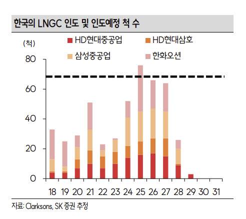 이어 “관세 인플레 영향에 따른 EPC 업체들의 비용 증가 및 하반기 금리 인하 여부를 확인한 이후 본격적인 파이낸싱을 고려하면서 최종투자결정(FID)이 지연되고 있는 것으로 추정된다”며 “하지만 2028년 인도 슬랏이 제한적인 것은 변함없으며, 올해 하반기에 기대하던 물량 발주가 나오지 않더라도 그만큼 내년 LNGC 발주 규모는 확대될 수밖에 없기에 조삼모사라는 판단”이라고 했다.