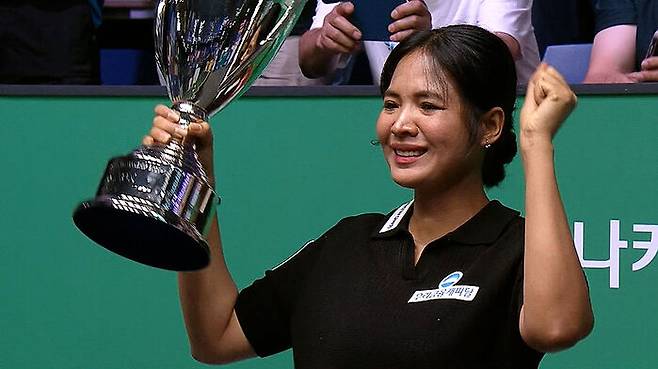 '캄보디아 특급' 스롱 피아비(우리금융캐피탈)가 1년 5개월 만에 프로당구 여자부 LPBA 우승 트로피를 차지했습니다.