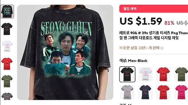 국제 쇼핑 플랫폼 '알리익스프레스'에서는 '오징어게임'에 등장한 의상과 배우 이정재의 얼굴이 인쇄된 티셔츠, 걸게 그림 등 불법 상품이 여전히 버젓이 판매 중입니다.