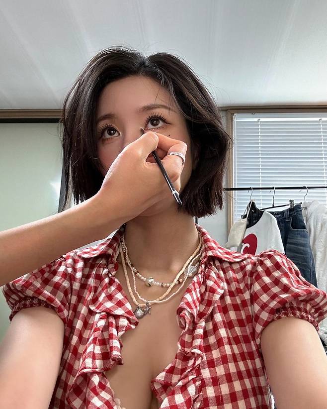 공개된 사진 속 권은비는 빨간색 체크 셔츠와 터질 듯한 핏의 상의를 착용해 상큼함과 동시에 농염한 매력을 동시에 발산했다.