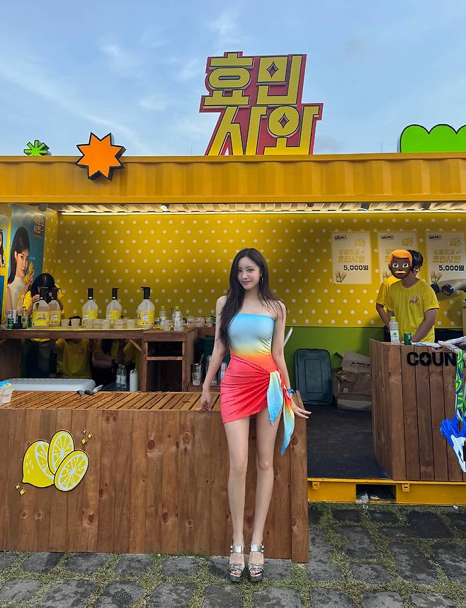 사진 속 효민은 자신이 론칭한 주류 브랜드와 함께 워터밤 현장을 찾은 모습.