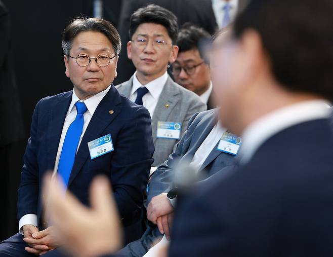 | ▲ 강기정 광주광역시장이 25일 광주광역시 국립아시아문화전당에서 이재명 대통령 주재로 열린 '광주시민·전남도민 타운홀미팅'에서 김영록 전남도지사의 발언을 듣고 있다. 2025.6.25 [대통령실통신사진기자단] |