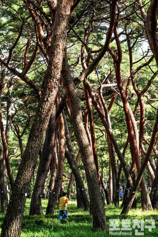 아름드리 소나무 터널이 햇볕을 차단해 바깥보다 시원합니다.