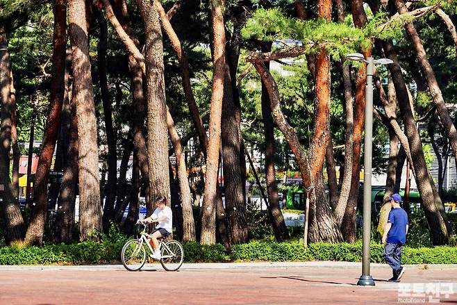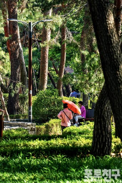 우이솔밭공원에는 산책하며 더위를 식히는 사람들이 많습니다.