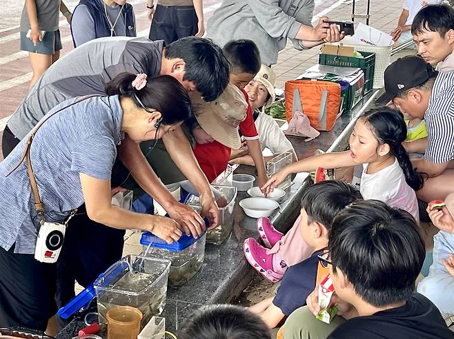 "내가 잡은 물고기야!" 아이들 중 한 명이 외치며 자랑하듯 친구들에게 물고기를 보여줬다. 어느새 물고기 관찰은 즉석 생태도감 수업으로 변해 있었다. 물고기 한 종, 한 종을 확인하며 선생님은 서식환경과 습성에 대한 설명을 이어갔다.