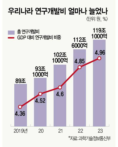 중국 현지 관계자와 전문가 의견을 종합하면, 이제 한국이 할 수 있지만 중국이 할 수 없는 것은 사실상 사라졌다. 수많은 지표는 오히려 한중 간 역조 현상을 가리킨다. 중국이 전진을 거듭하는 동안 한국은 왜 제자리걸음만 했을까. 일각에서는 연구개발(R&D) 투자를 대폭 늘려야 한다는 주장을 내놓는다. 하지만 우리나라는 이미 세계 최고 수준 연구개발 투자 국가다. 과학기술정보통신부에 따르면, 2023년 우리나라 국내총생산(GDP) 대비 연구개발비 비율은 약 5%로 이스라엘(6%)에 이어 세계 2위다. 연간 연구개발비는 1487억달러 규모로 미국(9232억달러), 중국(8118억달러)보다 부족하지만 일본·독일과 비슷하고 영국·프랑스보다 많다.