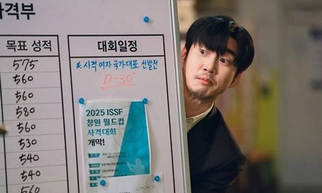 이어진 장면에서는 분위기가 반전된다. 배이지가 권총을 들고 주가람을 조준하고 있는 것. 주가람은 화이트보드 뒤에 몸을 숨긴 채 잔망스럽게 고개만 내밀고 있는 모습으로 웃음을 유발한다. 두 사람 사이에 어떤 일이 있었던 것인지, 재회의 배경에 관심이 쏠린다.