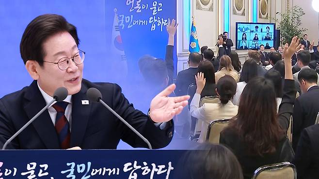 [이재명 대통령] "기자들의 질문을 받는다는 걸 빙자해서 제 이야기를 너무 많이 해 버린 것 같아서."