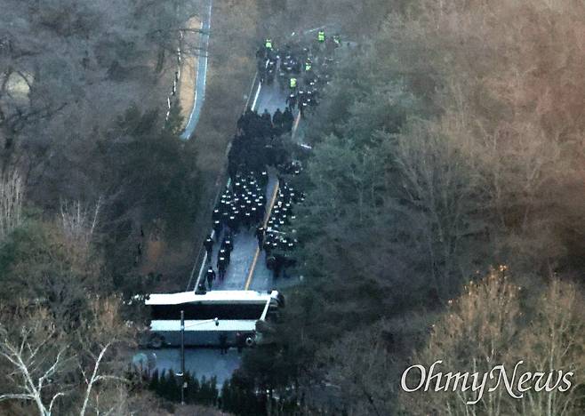 | ▲ ‘내란 우두머리’ 윤석열 대통령 체포영장 집행이 시도되는 1월 15일 오전 서울 용산구 한남동 대통령 관저 구역에 공수처 수사관과 경찰이 진입하고 있다. |