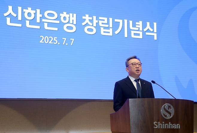 정상혁 은행장은 기념사를 통해 "신한은행은 1982년 창립 이후 '금융보국'의 정신으로 국가 발전과 국민경제 성장을 위해 노력해왔다"며 "고객 중심의 혁신과 기업의 사회적 책임을 실천하며, 더욱 신뢰받고 지속 가능한 일류은행으로 나아가겠다"고 강조했습니다.