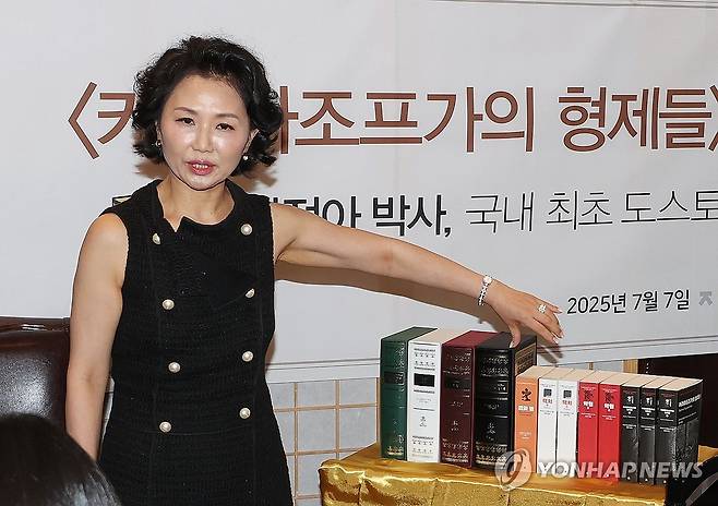 (서울=연합뉴스) 이재희 기자 = 김정아 번역가가 7일 서울 종로구의 한 식당에서 열린 '카마라조프가의 형제들' 출간 기자간담회에서 소감을 밝히고 있다. 2025.7.7