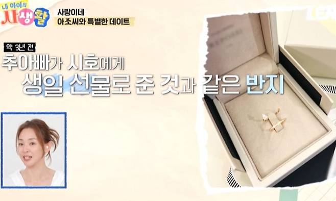 촬영 현장에 있던 주얼리를 본 추성훈과 야노 시호는 추억에 잠겼다. 추성훈은 한 반지를 가리키며 "이거 그거 아냐?"라고 물었고, 야노 시호는 "기억해?"라며 놀라는 모습을 보였다. 그리고 사랑이를 보며 "예전에 추성훈이 사줬다"라고 3년 전 생일에 같은 반지를 추성훈에게 선물 받은 적이 있다고 말했다.
