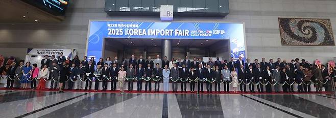 [서울=뉴시스] 7일 서울 강남구 코엑스에서 열린 한국수입박람회 개막식에서 참석자들이 테이프 커팅을 하고 있다.(사진=한국수입협회 제공) 2025.07.07. photo@newsis.com *재판매 및 DB 금지