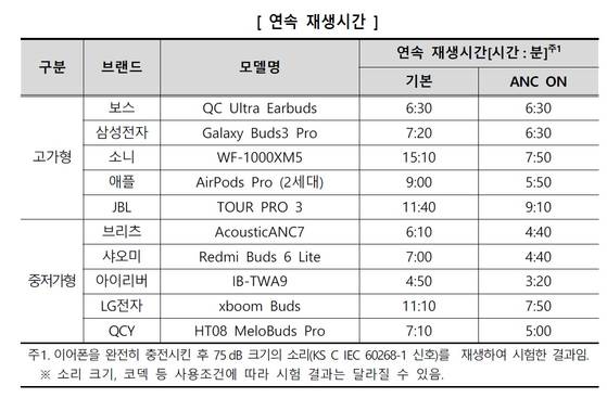 무선 이어폰 10개사 비교해보니…연속 재생 시간 최강자는?