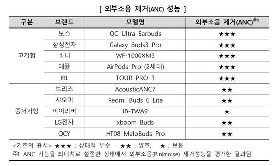 소음 제거 성능을 말하는 '노이즈 캔슬링'에선 고가 제품의 우세가 두드러졌습니다.