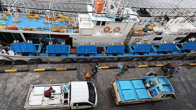 수협중앙회가 조업 활동에 불편을 줄인 팽창식 구명조끼를 연말까지 모든 어선에 보급하기 위해 구입비를 일부 지원합니다.