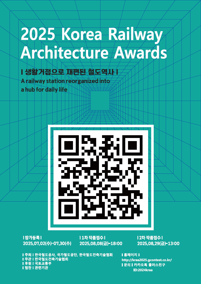 이번 공모전은 국내외 대학(원) 건축 관련학과의 재학생을 비롯해 일반 국민 누구나 참가할 수 있으며, 국내 철도역사(지하철역사 포함)에 대한 신축·증축 설계 아이디어,국내 철도 역세권 및 철도유휴부지에 대한 도시·건축적 제안 또는 개발안,국내 철도시설에 대한 건축적 제안을 설계 작품 형식으로 공모전 공식 누리집(https://kraa2025.gcontest.co.kr)에서 접수한다.