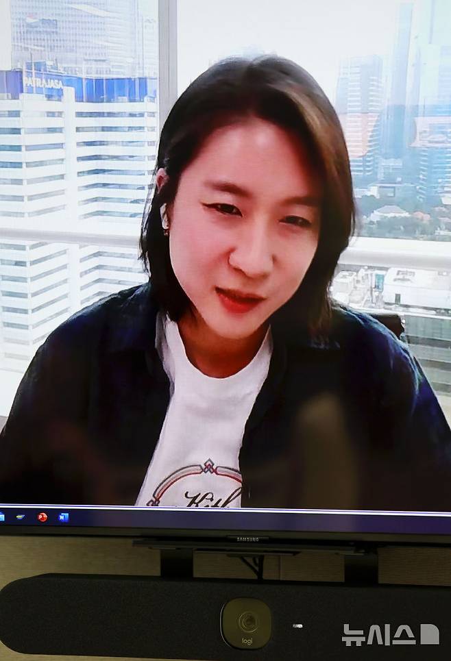 [서울=뉴시스] 홍효식 기자 = 현대차 신새미 아태권역본부 책임이 지난 4일 서울 강남구 현대차 강남사옥에서 단편 영화 '밤낚시' 관련 화상으로 뉴시스와 인터뷰하고 있다. 2025.07.07. yesphoto@newsis.com