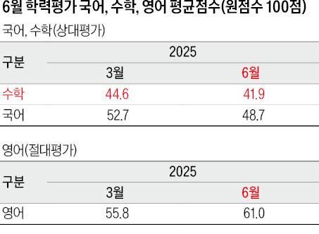 고1 6월 학력평가에서 국어, 수학, 영어 중엔 수학의 평균 점수가 가장 낮게 형성됐다. 수학은 41.9점, 국어는 48.7점, 영어는 61.0점으로 조사됐다. 영어는 새로운 수능에서도 절대평가로 치러지기 때문에 전반적으로 수험생의 부담감은 낮은 편이다.