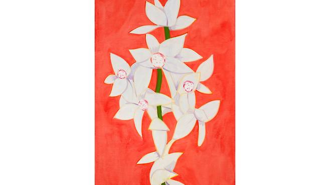 카츠가 코로나19 시기에 집중한 '꽃' 연작 가운데 하나인 이 작품은 가로 122.3cm, 세로 183.5cm로 붉은 배경에 난초가 그려져 있으며 색의 밀도와 구성 면에서 완성도가 높다는 평가를 받고 있습니다.