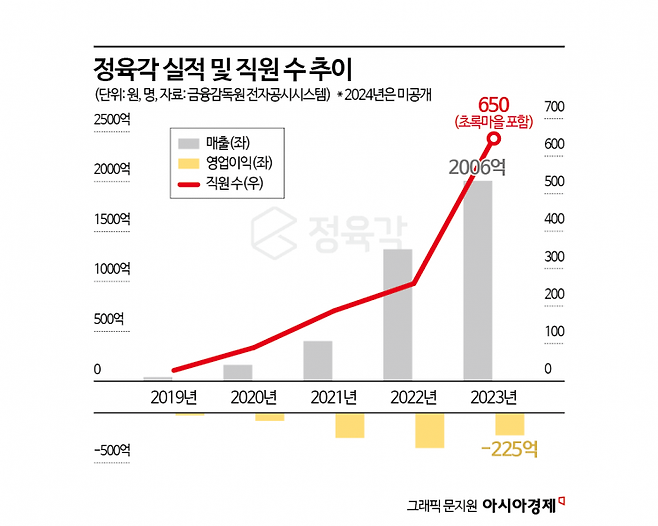 그사이 회사의 적자 규모도 눈덩이처럼 불어났다. 초록마을 인수 이후 정육각의 매출은 폭발적으로 성장해 2023년 2006억원을 기록했지만, 2019년 26억원이었던 영업손실은 2023년 225억원으로 늘었다. 오프라인 유통 경험이 없는 데다가, 초록마을의 손실도 점점 커진 탓이다. 초록마을 매출액은 2022년 1909억원에서 2023년 1788억원으로 6.3% 줄었으며, 같은 기간 영업손실은 2022년 83억원에서 87억원으로 늘었다. 지난해 감사보고서는 발표하지 않았지만, 현재는 완전 자본잠식 상태로 알려졌다. 정육각 관계자는 "재작년에도 감사보고서가 8월에 올라간 이력이 있다"며 "지난해 기준 자본잠식에 빠져있는 상태"라고 말했다.