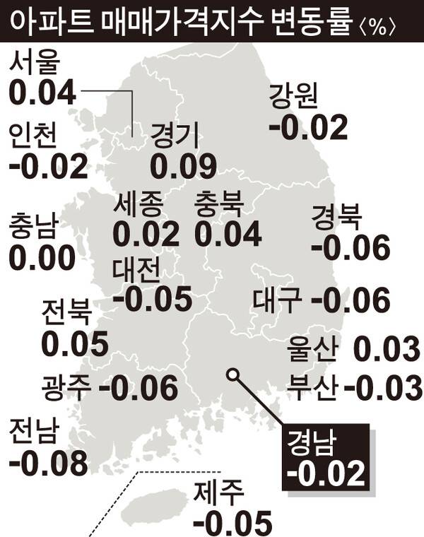 지난달 28일 '가계부채 관리 강화 방안'이 시행되고서 은행권 주담대 신청액이 절반 이상 줄어든 것으로 나타났다. 주담대 규모를 최대 6억 원 한도로 제한하자 규제 발표 첫 주(6월 30일~7월 3일) 은행권 서울 지역 일 평균 주담대 신청액은 3500억 원대로 집계됐다. 전주 일 평균 신청액(7400억 원대)과 비교하면 52.7% 감소했다. 서울 강남권 아파트 매수 심리도 두 달 만에 꺾였다. 한국부동산원은 지난달 30일 기준 서울 동남권(강남·서초·송파·강동구) 아파트 매매수급지수는 108.8로 전주 대비 2.4포인트(p) 떨어졌다고 밝혔다. 5월 첫 주부터 7주 연속 상승하던 지수가 하락했다. 지난달 30일 기준 전국 주간 아파트가격 동향에서도 서울은 상승폭이 0.4%로 전주보다 0.03%p 줄었고, 지방은 0.02% 하락했다. 경남지역도 0.02% 떨어졌다.