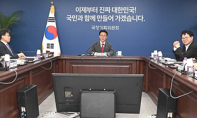 | 국정위 간 김총리 “저비용·고체감 정책 추진” 김민석 국무총리(가운데)가 7일 오후 정부서울청사 별관에서 열린 국정기획위원회 제4차 전체회의에서 인사말을 하고 있다. 정부청사사진기자단 |